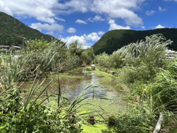 2021年末から徳島大学の山中亮一先生・森田椋也先生をはじめ、学生の皆さんにも協力してもらいながら、この水質浄化池の現状を調査したり、除草などの手入れを重ねてきました。
