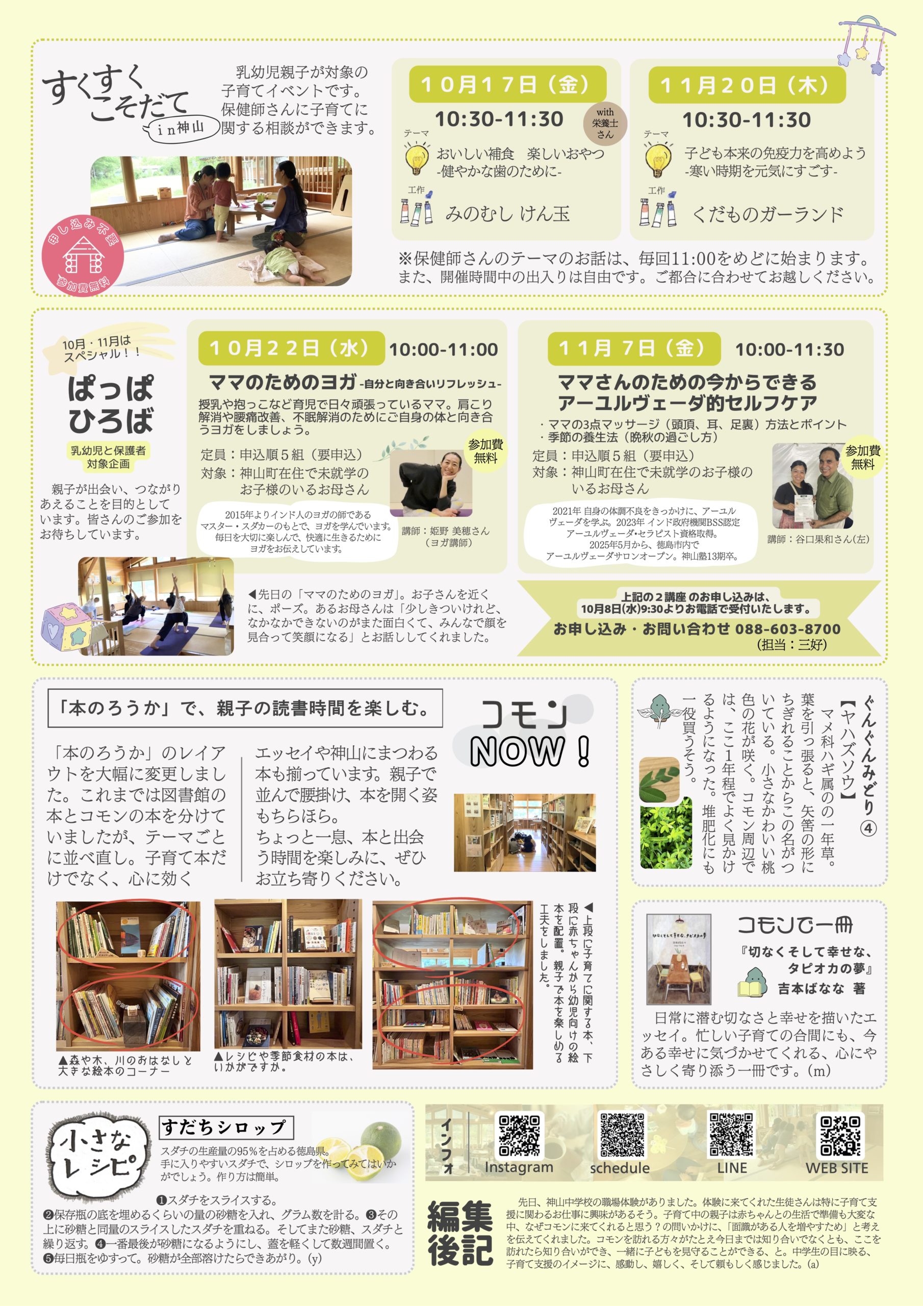 日に日に秋の気配が深まっているコモンから。10月11月の「ぱっぱ」のお知らせをいたします。