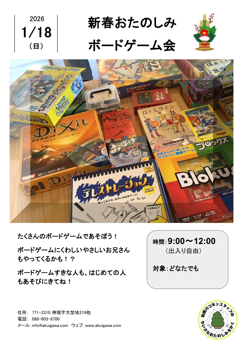 1: 9:00〜12:00 新春おたのしみボードゲーム会