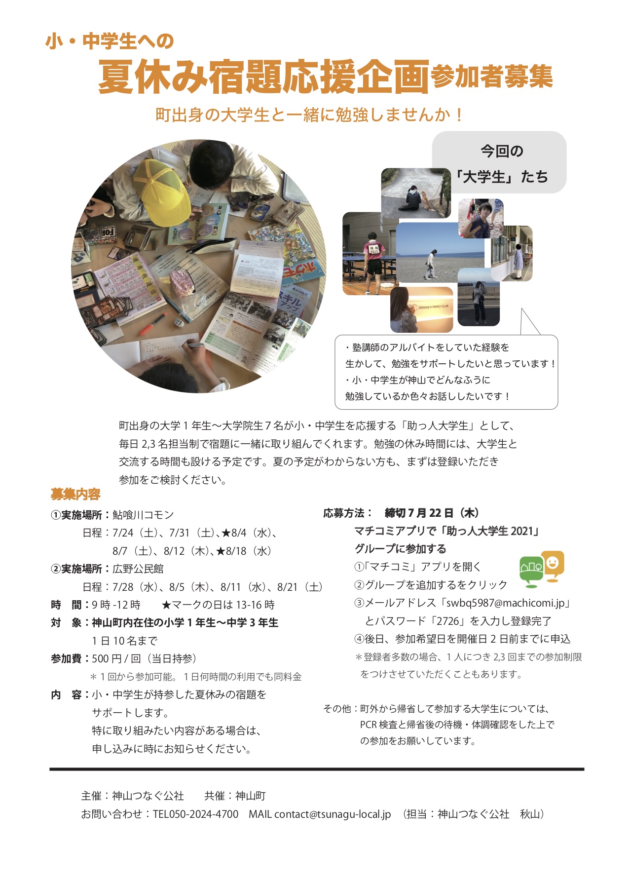 小・中学生への「夏休み宿題応援企画」(開催日7/24〜8/21)